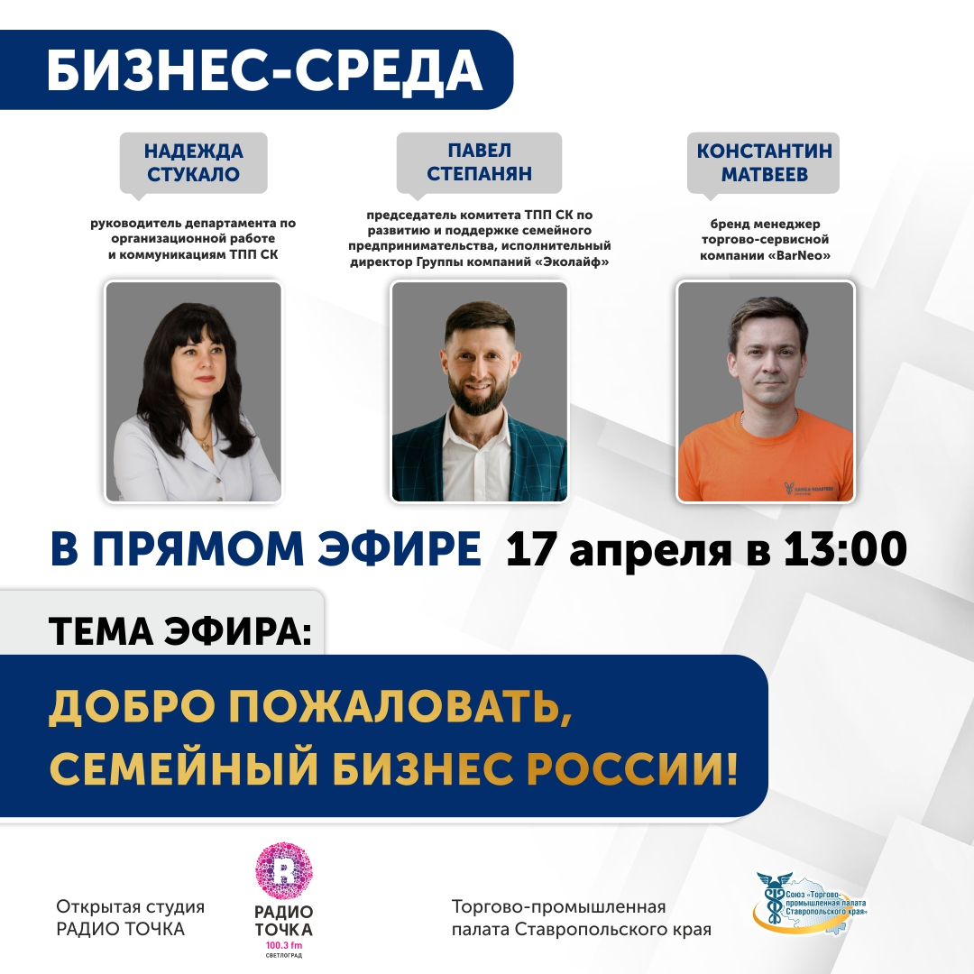 «Бизнес-среда» (совместный проект Союза «Торгово-промышленная палата Ставропольского края» (ТПП СК) и Радио Точка).