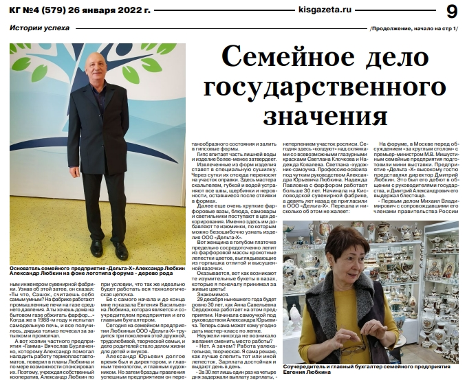 О семейной компании Любкиных, их участии в форуме, встрече с Михаилом Мишустиным, истории создания предприятия «Кисловодская газета» в № 4 от 26 января 2022 года опубликовала замечательный материал.