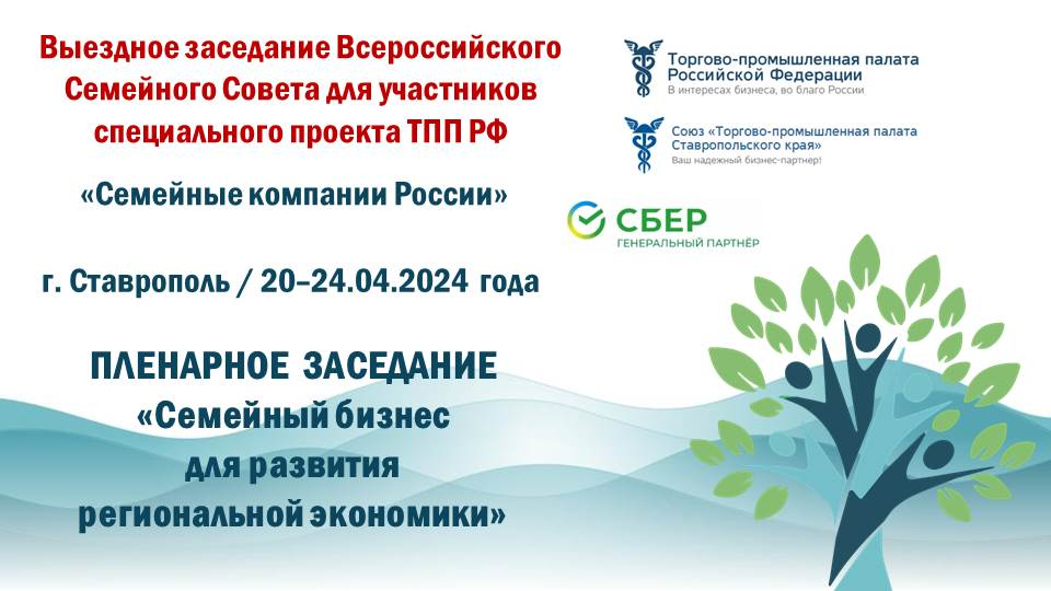Семейные предприниматели – участники специального проекта Торгово-промышленной палаты России «Семейные компании России» соберутся с 20 по 24 апреля 2024 года в г. Ставрополь для работы в рамках выездного заседания Всероссийского семейного совета.